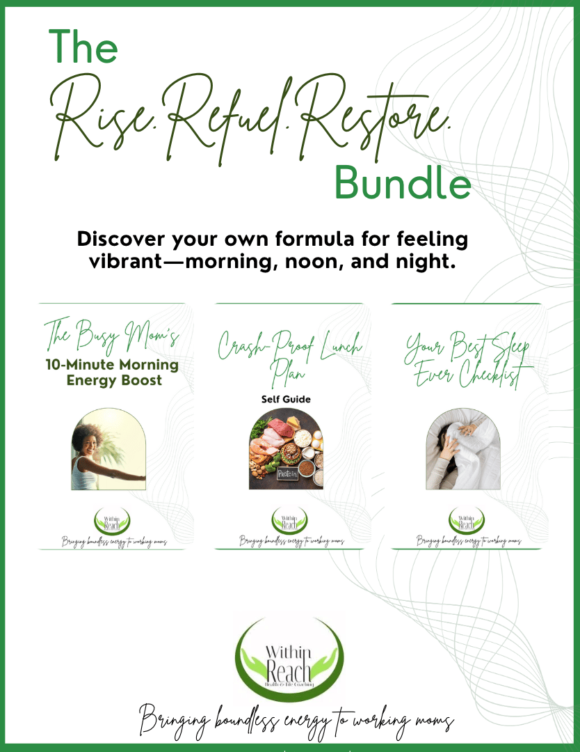 Your energy has a rhythm—this bundle helps you find it. With Rise.Refuel.Restore., you’ll learn how to wake up with purpose, stay fueled through the afternoon, and wind down for truly restorative rest. Each piece is designed to help you tune into what your body needs at every part of the day, so you can feel vibrant and alive—naturally.